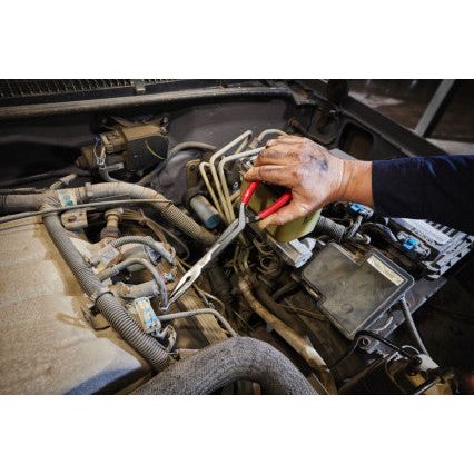 Shop the Full CollectionThe Milwaukee Hose Grip Plier provides superior control and grip with its deep-reach cross handles and single-joint grip force. The multi-function gripping zones allow for grabbing a wide range of materials, including screws, cables, and round parts. Its rounded tips also prevent damage to hoses. Dimensions are H30mm x L200mm x W70mm.