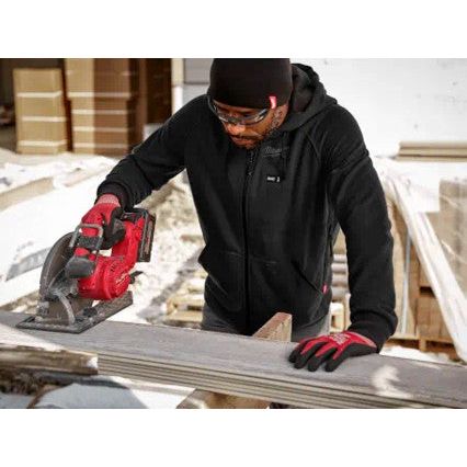 M12 Heated Hoodie powered by an M12 battery with carbon fibre heating elements creates and distributes heat to chest and back.