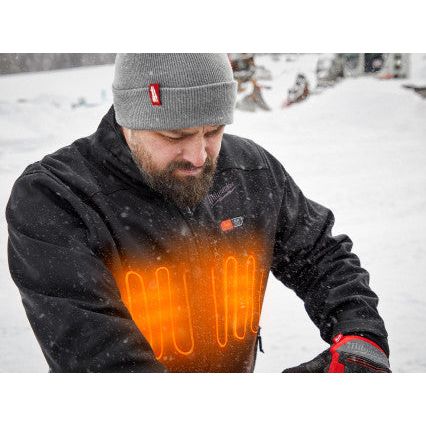 M12 Heated Jacket powered by an M12 Battery with carbon fibre heating elements creates and distributes heat to chest, back and shoulders.